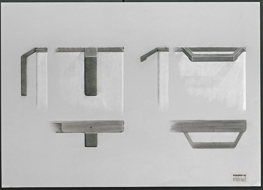 Luonnos Helkama-jääkaapin ovenkahvoista.