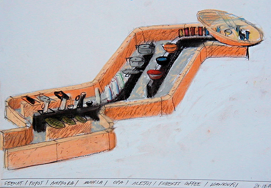 Luonnos Find-näyttelyn rakenteista vuodelta 1999.