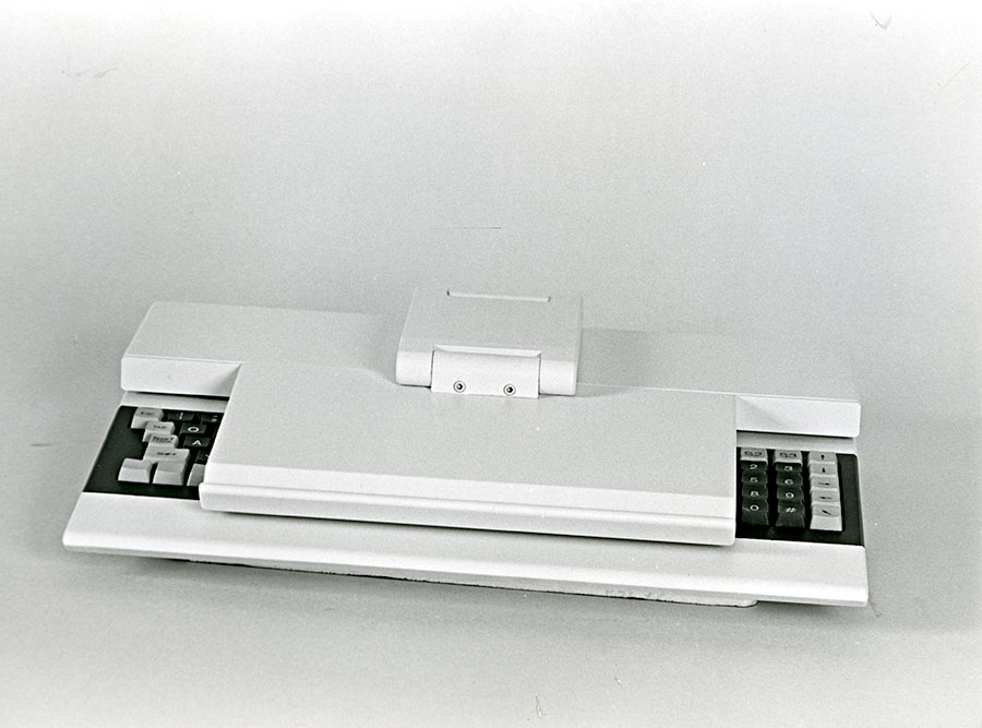 Maailman ensimmäisen kannettavan tietokoneen esitekuvaukseen tehty puumalli vuodelta 1983.
