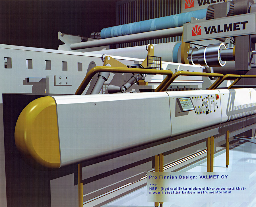 Tuotteistamistyön aikana kaikki rakenneratkaisut kyseenalaistettiin niin, että saatiin aikaan sopivannäköinen ja kaikissa tuotantovaiheissaan tehokkaasti sekä ergonomisesti valmistettava tuote. Myös huollon helppous, ergonomia sekä työympäristöolot paranivat. Kuvassa HEP (hydrauliikka-elektroniikka-pneumatiikka) -moduuli, joka sisältää kaiken instrumentoinnin.
