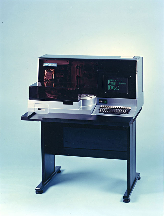 Puusta tehty verianalysaattorin malli on vuodelta 1983.