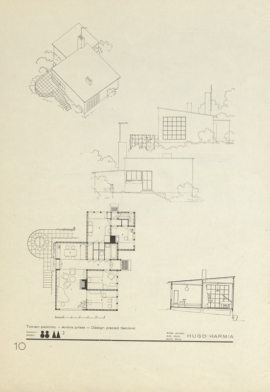 Huvilakilpailu 1932 The Insulite Company of Finland O.Y. julisti tyyppihuvilakilpailun vuonna 1932. Osallistujien piti suunnitella yhden perheen talvihuvila. Kilpailun voitti arkkitehti O. Flodin ehdotuksellaan ”Nono”. Hugo Harmia Kuva 25 / 34