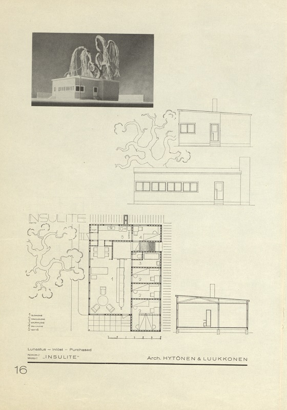 Huvilakilpailu 1932 The Insulite Company of Finland O.Y. julisti tyyppihuvilakilpailun vuonna 1932. Osallistujien piti suunnitella yhden perheen talvihuvila. Kilpailun voitti arkkitehti O. Flodin ehdotuksellaan ”Nono”. Hytönen & Luukkonen Kuva 31 / 34