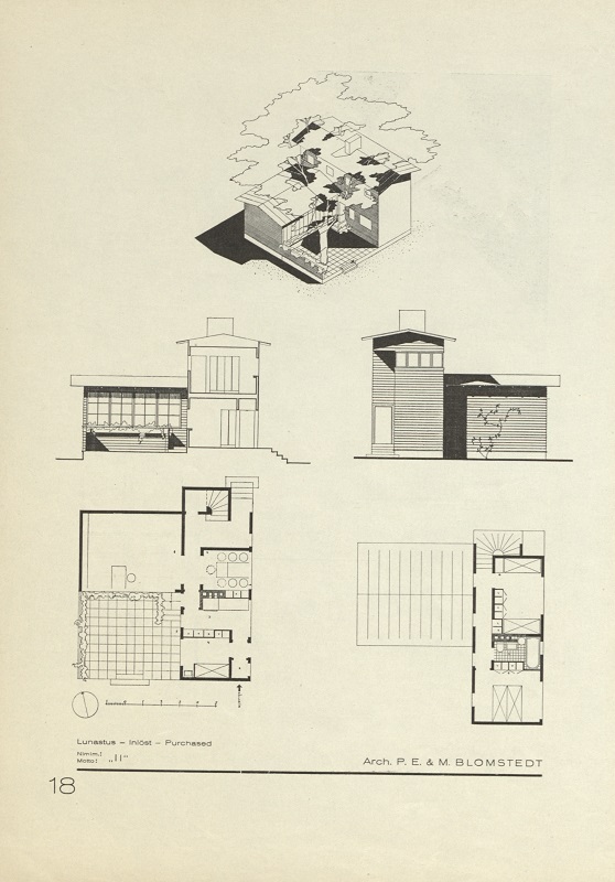Huvilakilpailu 1932 The Insulite Company of Finland O.Y. julisti tyyppihuvilakilpailun vuonna 1932. Osallistujien piti suunnitella yhden perheen talvihuvila. Kilpailun voitti arkkitehti O. Flodin ehdotuksellaan ”Nono”. P.E. & M. Blomstedt Kuva 33 / 34