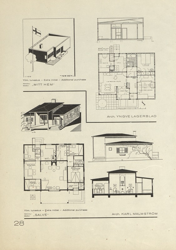 Huvilakilpailu 1932 The Insulite Company of Finland O.Y. julisti tyyppihuvilakilpailun vuonna 1932. Osallistujien piti suunnitella yhden perheen talvihuvila. Kilpailun voitti arkkitehti O. Flodin ehdotuksellaan ”Nono”. Karl Malmström, Yngve Lagerblad Kuva 9 / 34