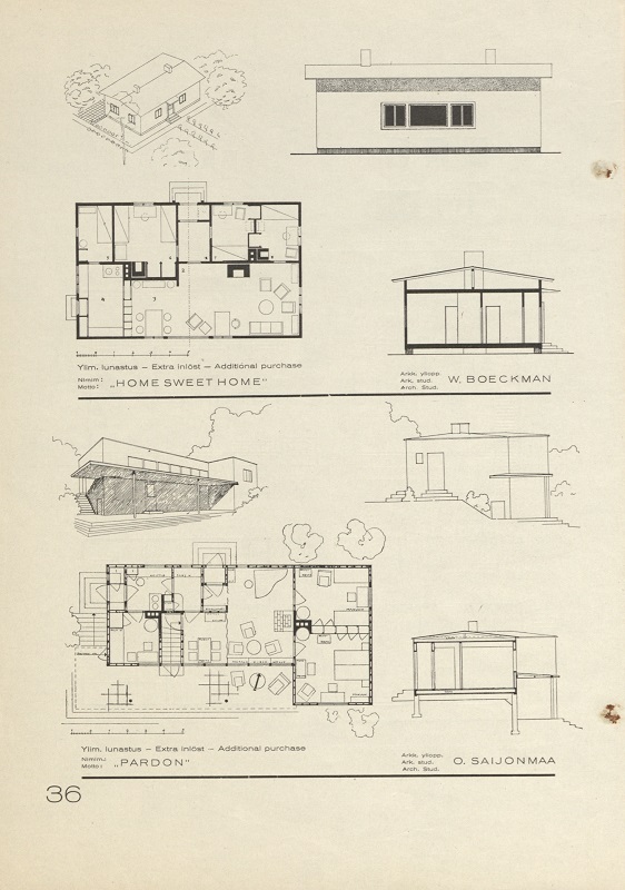 Huvilakilpailu 1932 The Insulite Company of Finland O.Y. julisti tyyppihuvilakilpailun vuonna 1932. Osallistujien piti suunnitella yhden perheen talvihuvila. Kilpailun voitti arkkitehti O. Flodin ehdotuksellaan ”Nono”. O. Saijonmaa Kuva 17 / 34