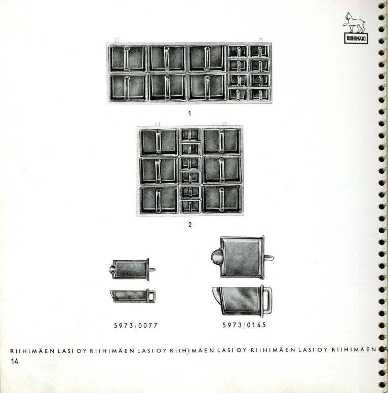 Kuvasto vuodelta 1954 sisältää puristettua talouslasia, säilöntäastioita ja viilikehloja, lampun- ja lyhdynlaseja, myymäläkalusteita, puhallettua talouslasia, astiastoja, hiottua lasia ja koristelasia. Kuvaston lasiesineiden suunnittelijoina on mm. Nanny Still ja Helena Tynell.
