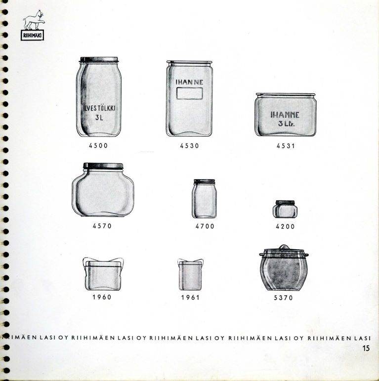 Kuvasto vuodelta 1954 sisältää puristettua talouslasia, säilöntäastioita ja viilikehloja, lampun- ja lyhdynlaseja, myymäläkalusteita, puhallettua talouslasia, astiastoja, hiottua lasia ja koristelasia. Kuvaston lasiesineiden suunnittelijoina on mm. Nanny Still ja Helena Tynell.