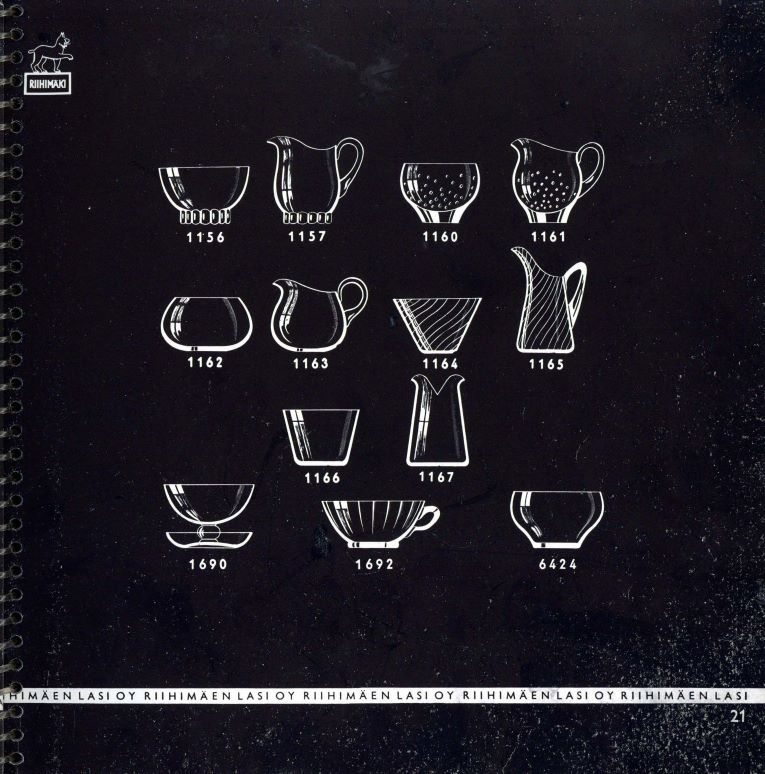 Kuvasto vuodelta 1954 sisältää puristettua talouslasia, säilöntäastioita ja viilikehloja, lampun- ja lyhdynlaseja, myymäläkalusteita, puhallettua talouslasia, astiastoja, hiottua lasia ja koristelasia. Kuvaston lasiesineiden suunnittelijoina on mm. Nanny Still ja Helena Tynell.