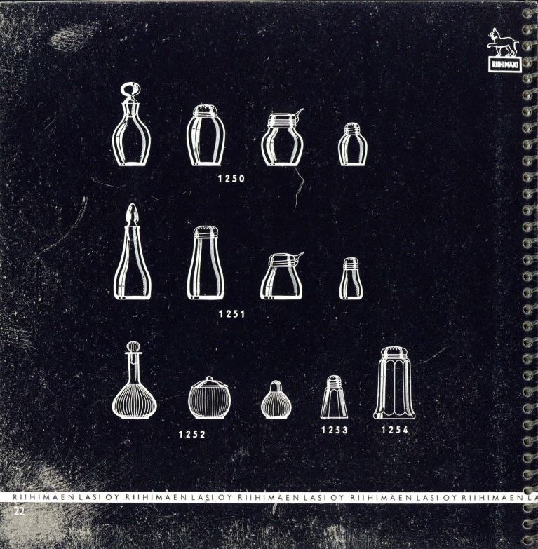 Kuvasto vuodelta 1954 sisältää puristettua talouslasia, säilöntäastioita ja viilikehloja, lampun- ja lyhdynlaseja, myymäläkalusteita, puhallettua talouslasia, astiastoja, hiottua lasia ja koristelasia. Kuvaston lasiesineiden suunnittelijoina on mm. Nanny Still ja Helena Tynell.