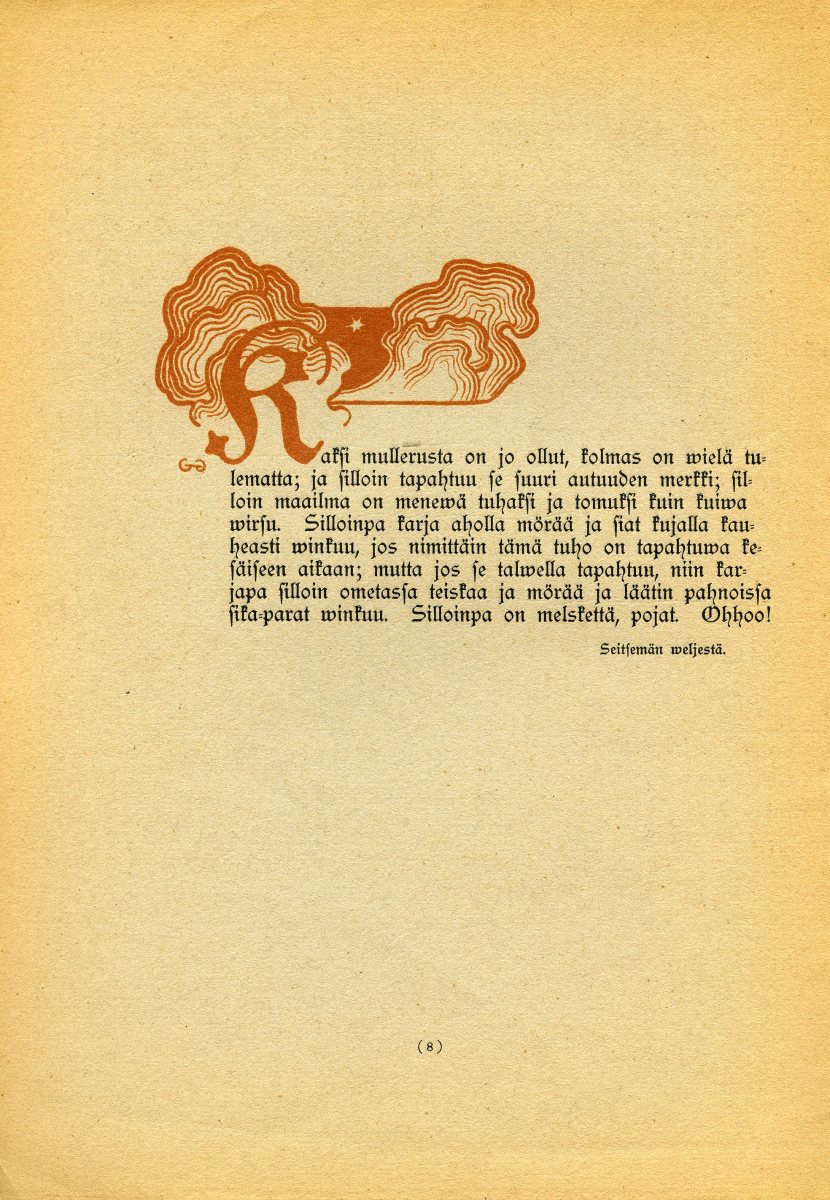 Mi ikävyys, mi hämäryys sieluni ympär’ Kuin syksy-iltanen autiomaall? Aleksis Kivi