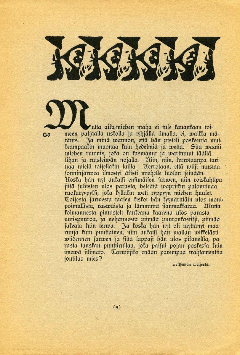 Hienosti kuvitettu pieni Kiwi-kirjanen sisältää otteita Aleksis Kiven tuotannosta. Suurin osa otteista on Seitsemästä veljeksestä, mutta mukana on myös Lea, Kullervo ja Nummisuutarit. Kirjan on kuvittanut ja sovittanut Albert Gebhardt, kaksi kuvaa on tehnyt Eero Järnefelt ja yhden kuvan Pekka Halonen. Kirjanen on Tilgmannin tuotantoa vuodelta 1901.