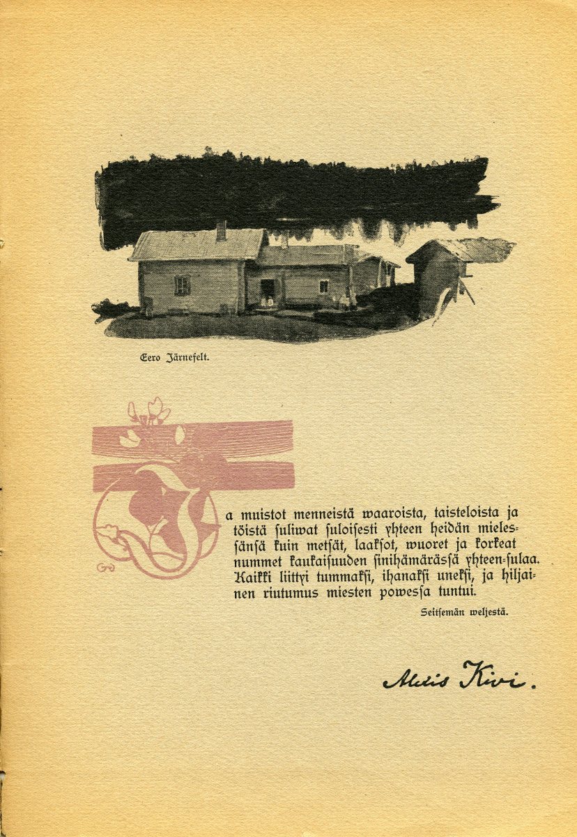 Hienosti kuvitettu pieni Kiwi-kirjanen sisältää otteita Aleksis Kiven tuotannosta. Suurin osa otteista on Seitsemästä veljeksestä, mutta mukana on myös Lea, Kullervo ja Nummisuutarit. Kirjan on kuvittanut ja sovittanut Albert Gebhardt, kaksi kuvaa on tehnyt Eero Järnefelt ja yhden kuvan Pekka Halonen. Kirjanen on Tilgmannin tuotantoa vuodelta 1901.