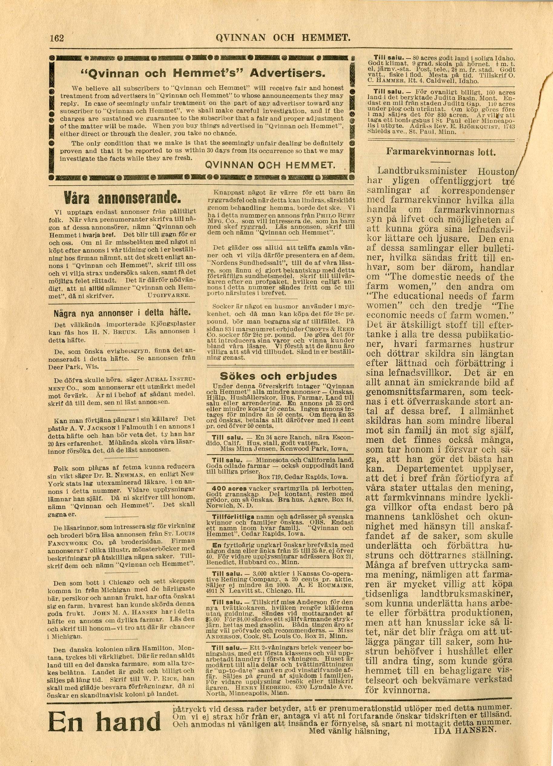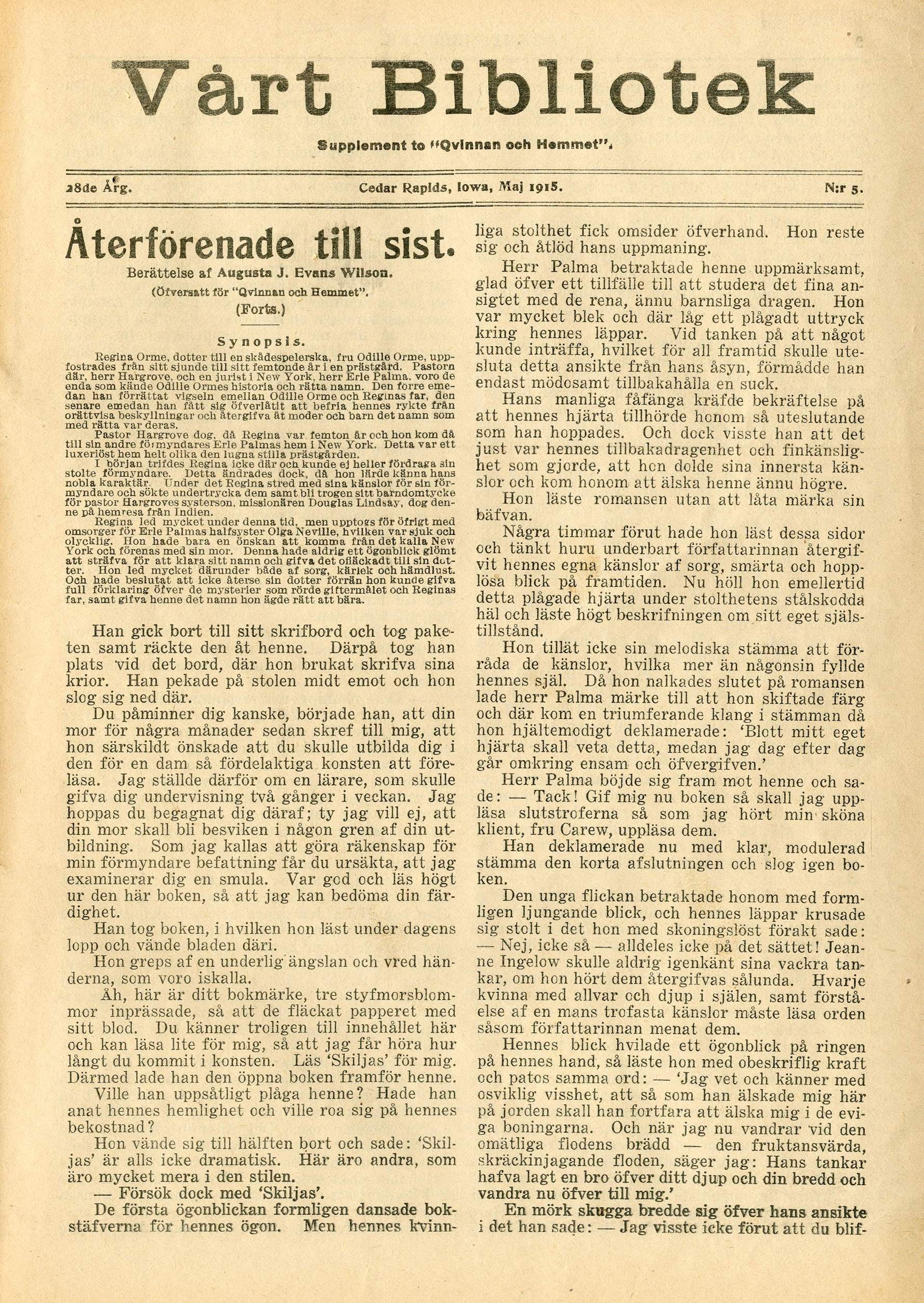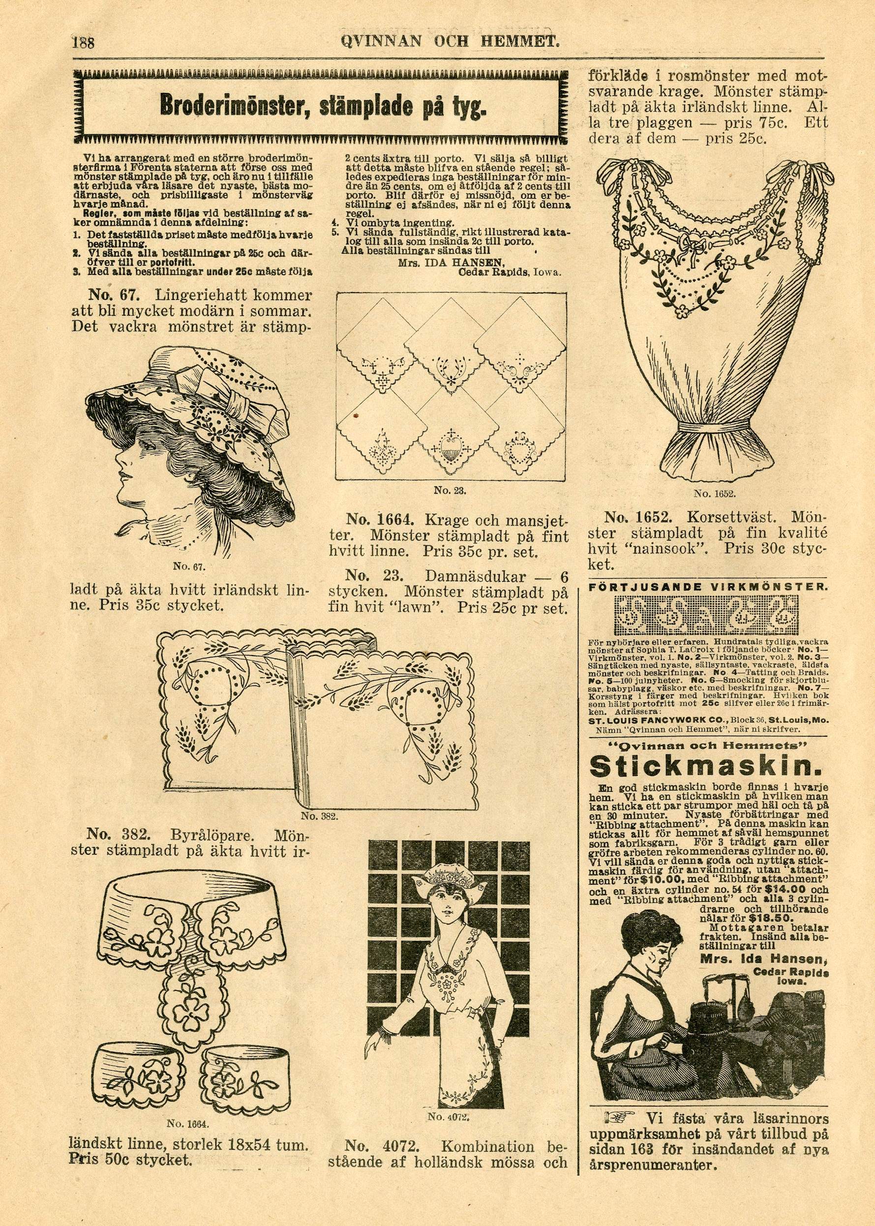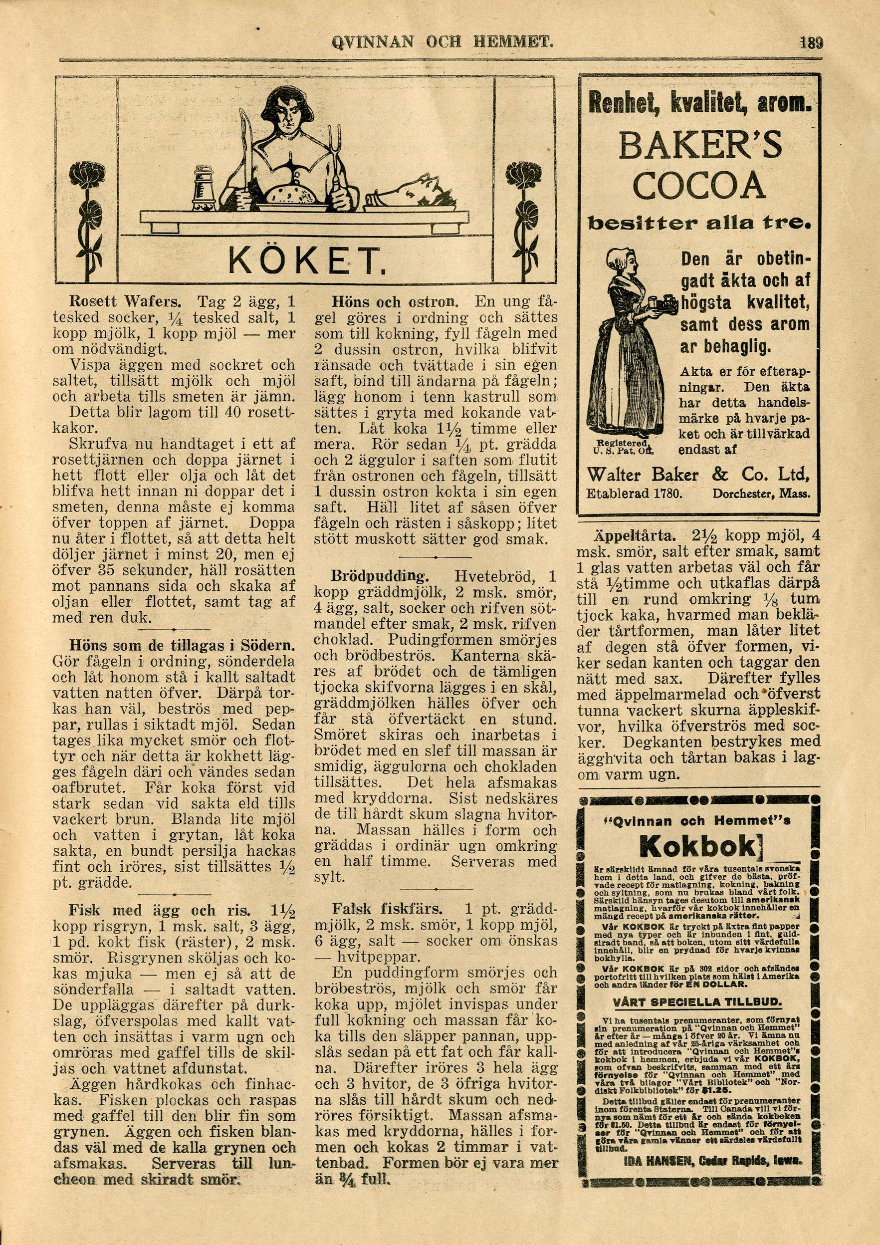 Lehti on perustettu vuonna 1888 ja sen pääkonttorin sijainniksi kerrotaan Cedar Rapids, Iowa. Lehti on mitä ilmeisimmin tarkoitettu ruotsinkielisille siirtolaisille. Ruokaohjeita, mainoksia, muotia ja muuta luettavaa eli naistenlehtien perusaineistoa.