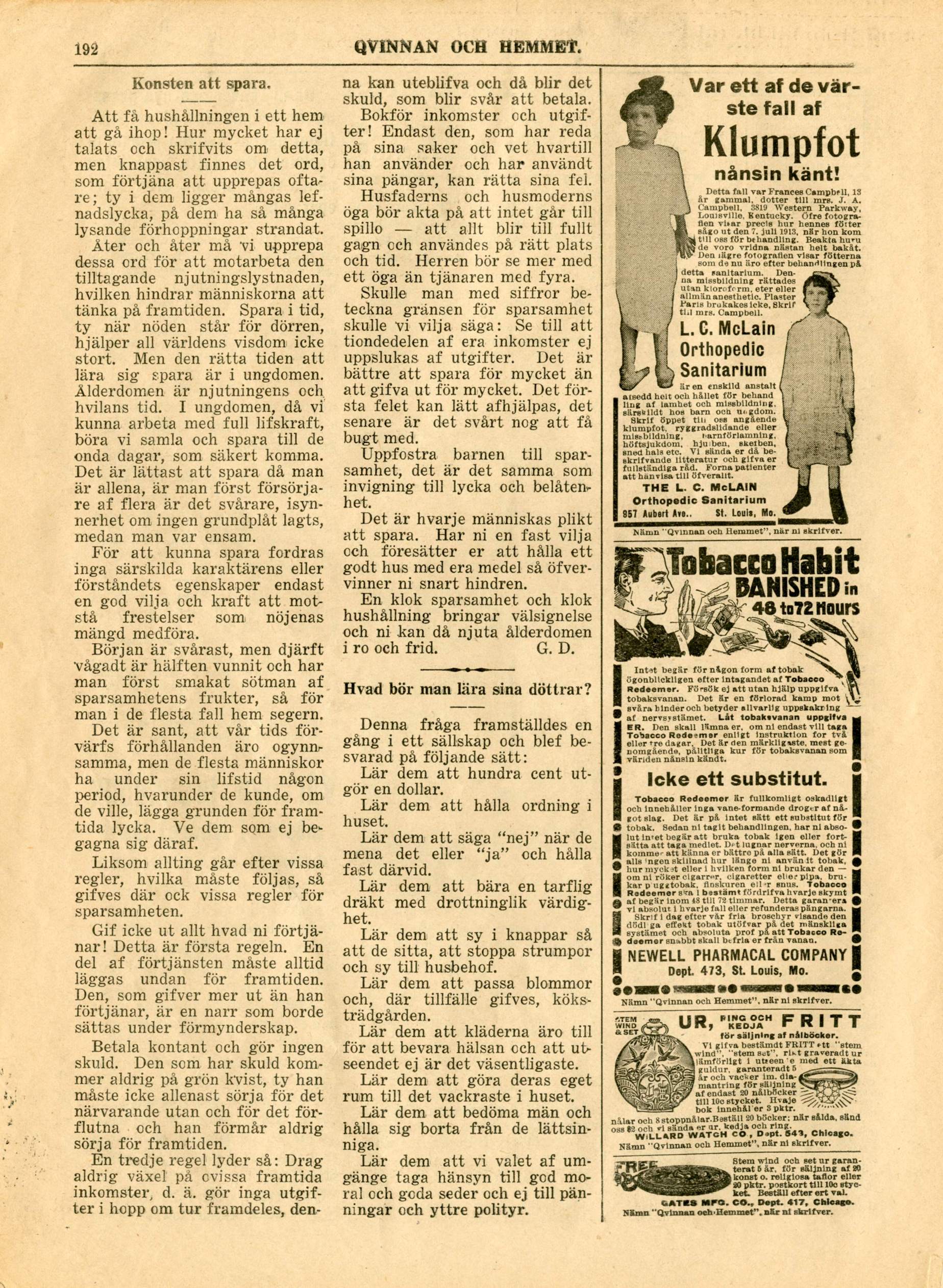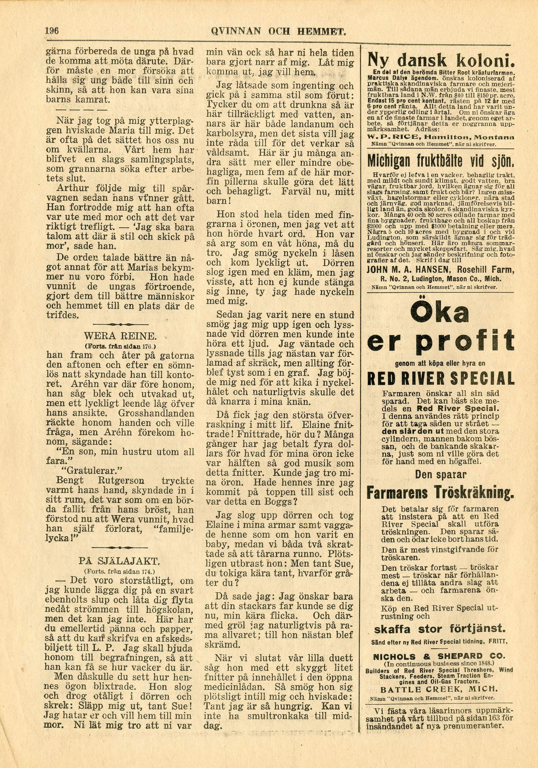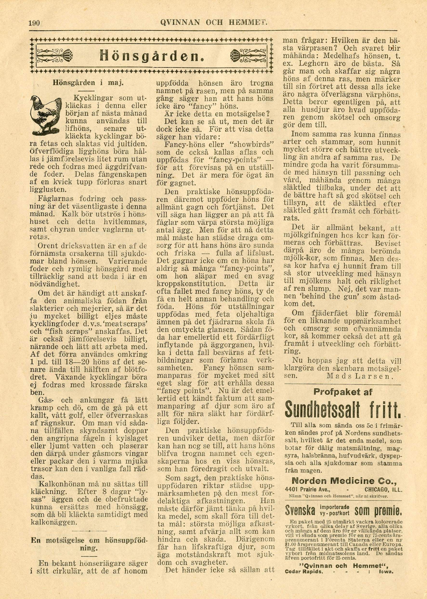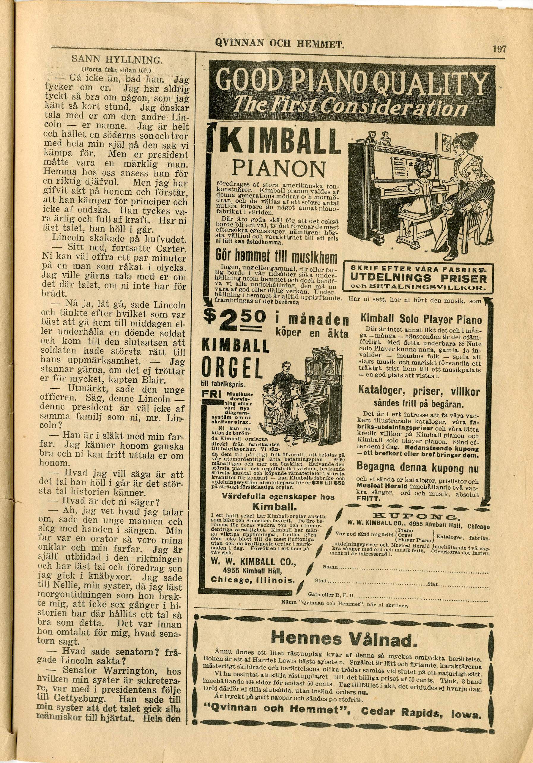 Lehti on perustettu vuonna 1888 ja sen pääkonttorin sijainniksi kerrotaan Cedar Rapids, Iowa. Lehti on mitä ilmeisimmin tarkoitettu ruotsinkielisille siirtolaisille. Ruokaohjeita, mainoksia, muotia ja muuta luettavaa eli naistenlehtien perusaineistoa.