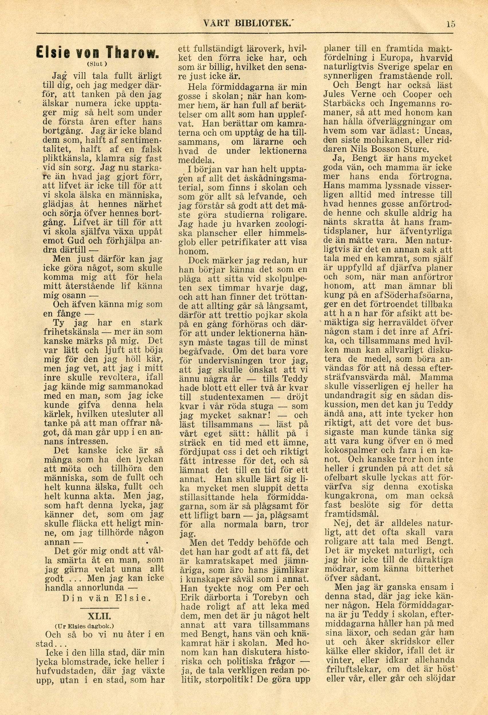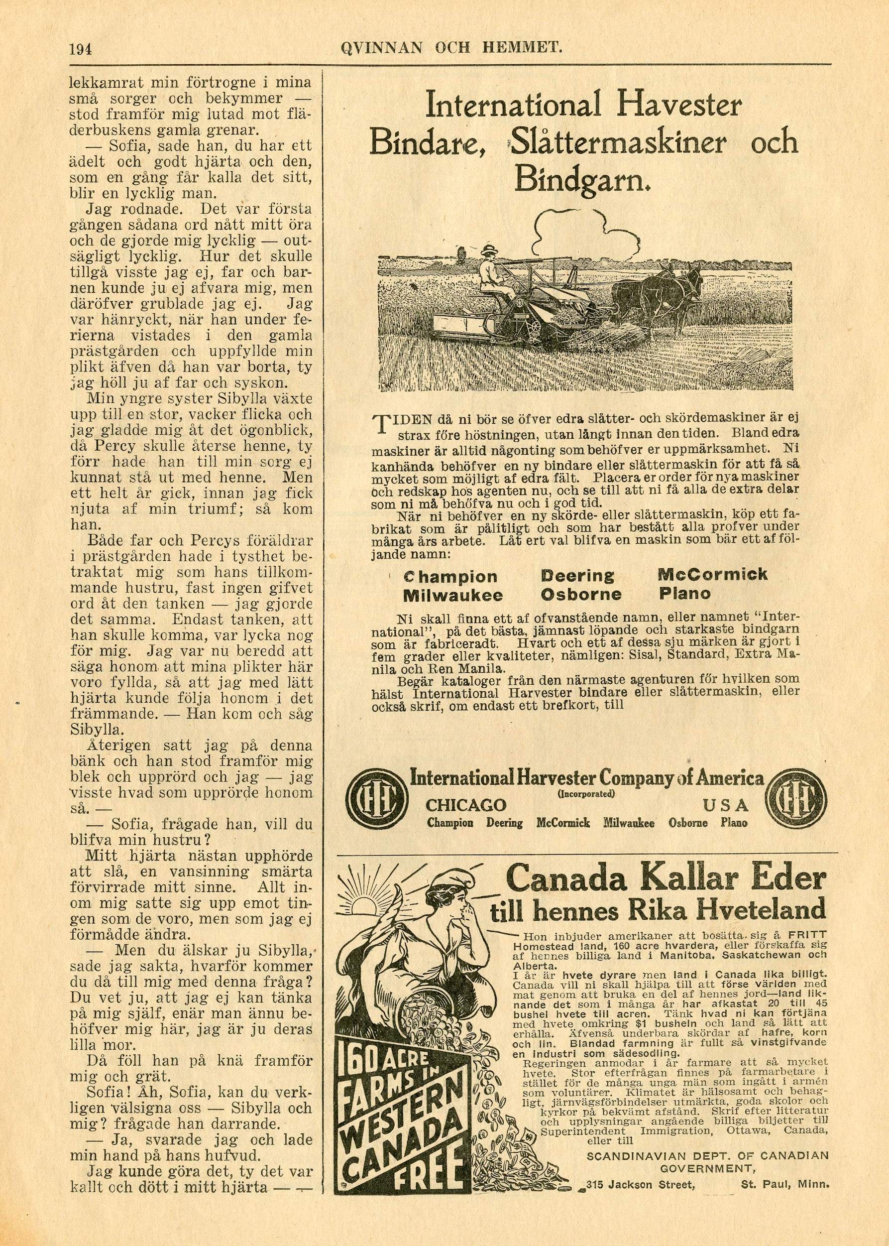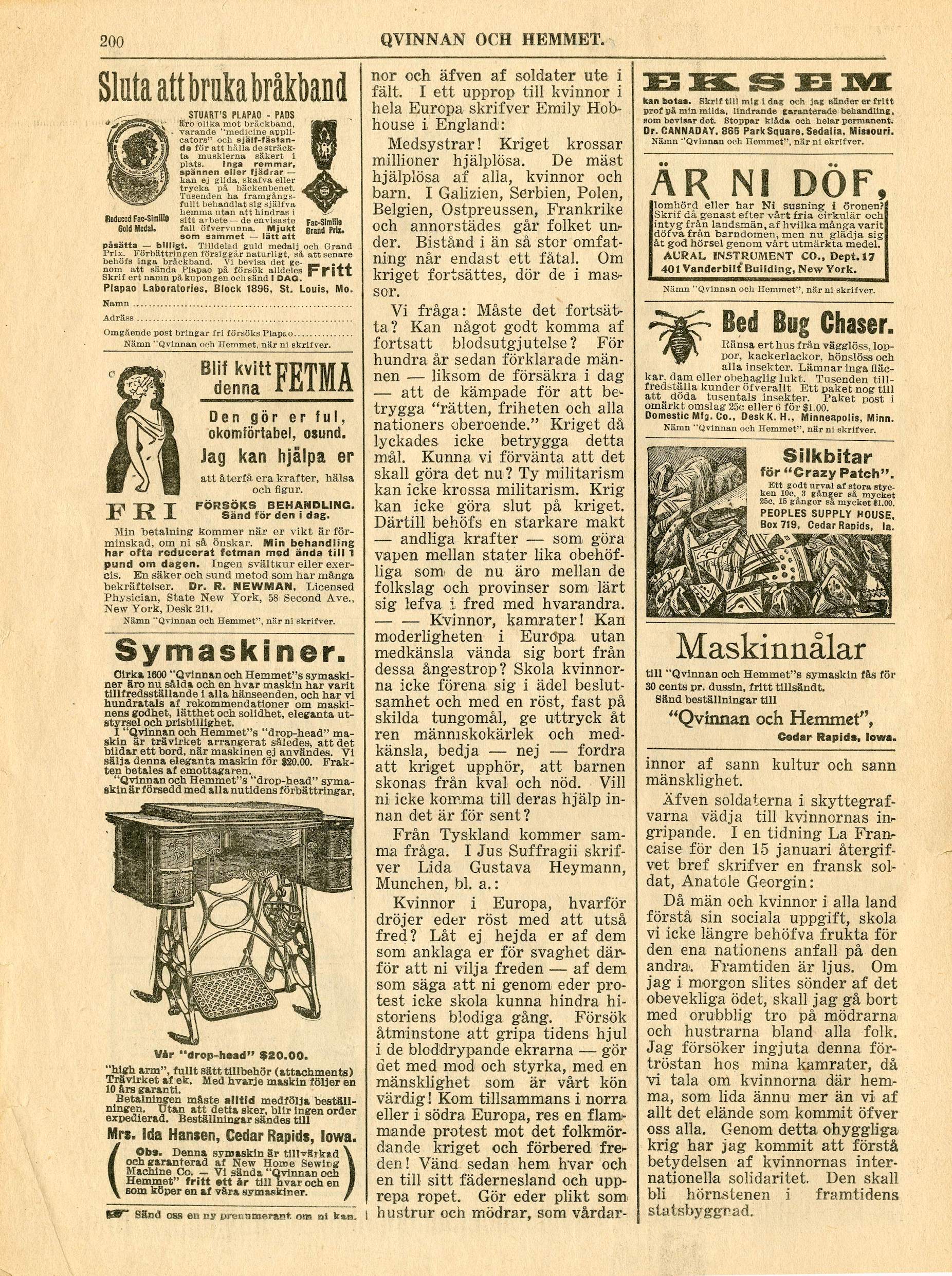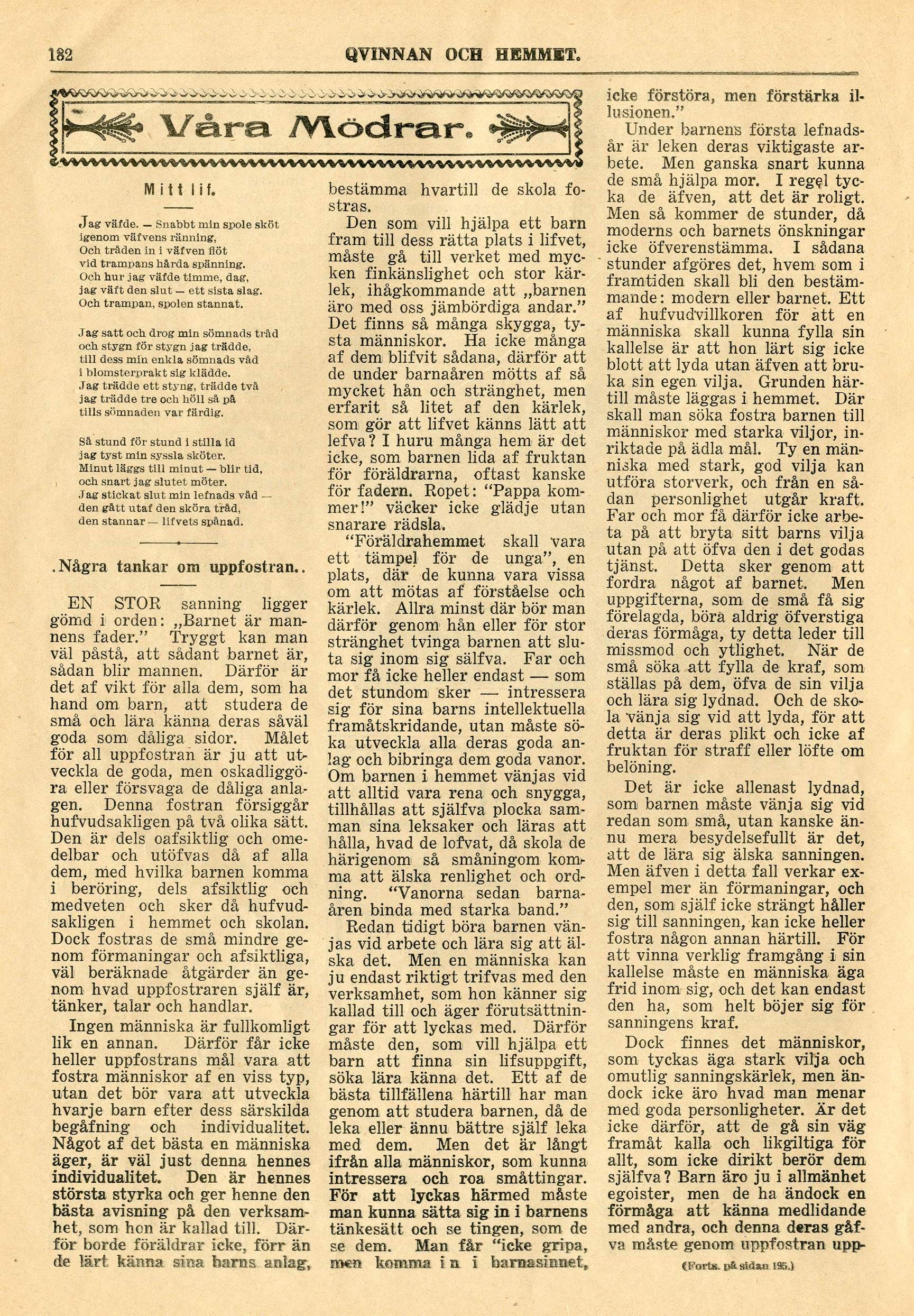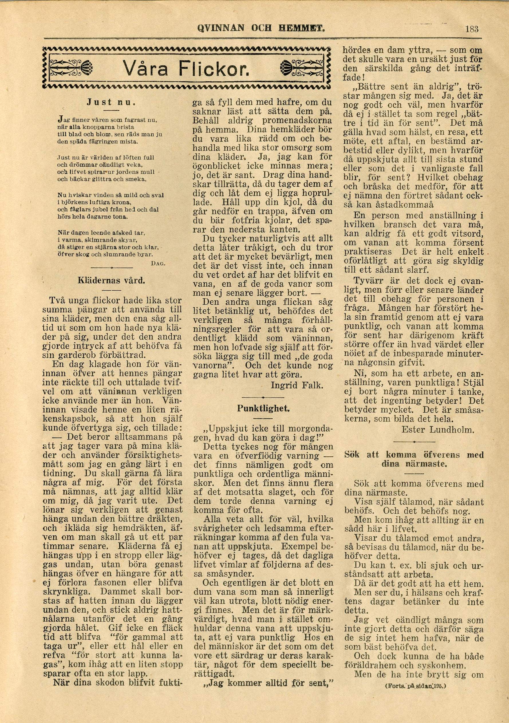 ’”Qvinnan och Hemmet” -lehden numero 5/1915 löytyi Elkan kirjaston kokoelmista.